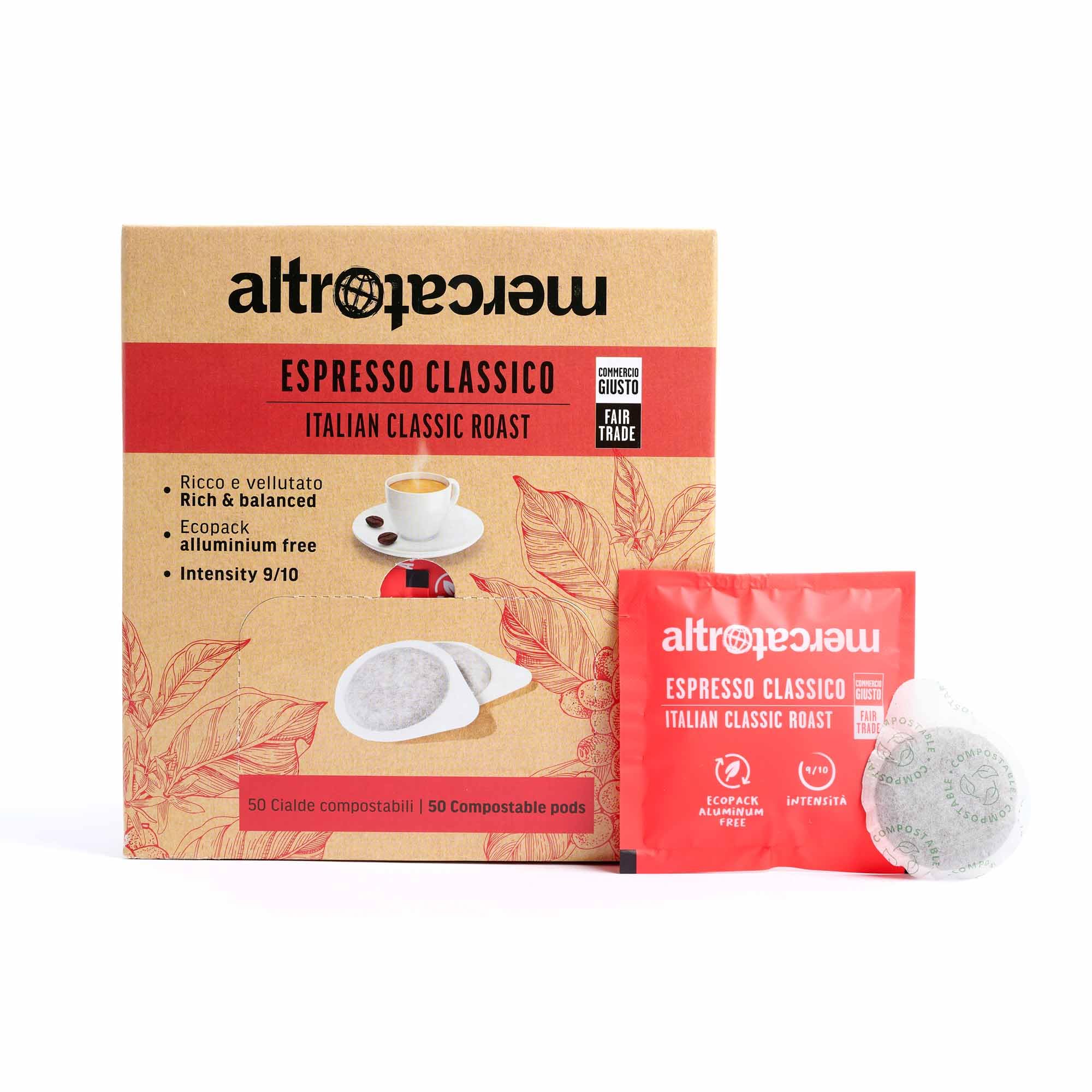 Altromercato Caffè Classico Espresso Aromas Intensamente Gustosi per Coffee Lovers - 50 Pods - 350 g | Altromercato Caf